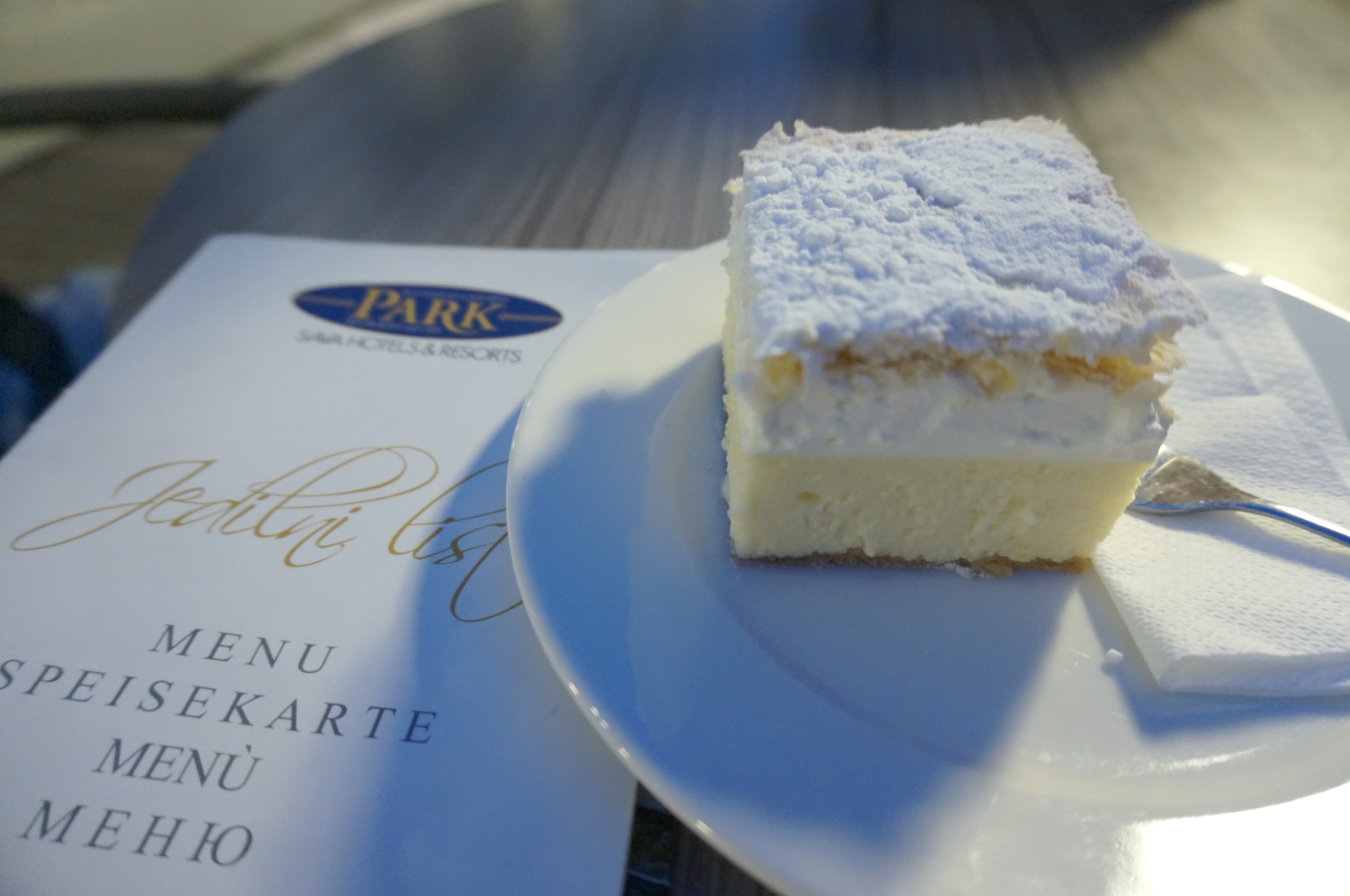 A must try when in Bled is the traditional Bled cream cake. Not trying it would be like visiting Newfoundland and not kissing a codfish and having a swally of Screech. The tastiest and most authentic cream cake is made at the Park Restaurant and Cafe in Bled’s town centre. Jess and I headed there in the evening and sat on the terrace where we had a perfect view of the lake below and Bled Castle above. Oh and the cake was good, but it was nothing to write home about (as I write home about it).