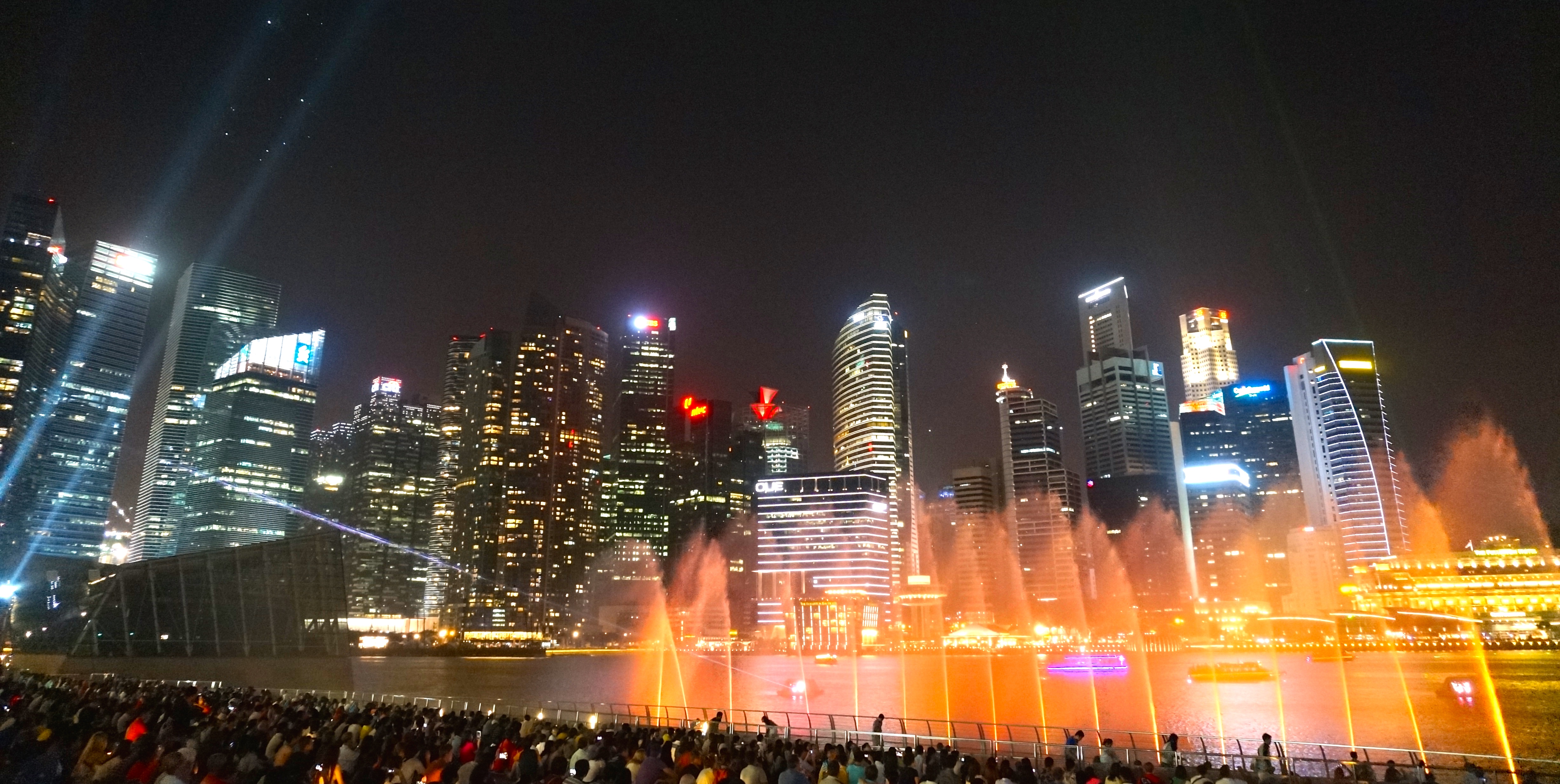 As soon as our free walking tour ended, we hopped on the subway (and by hopped I mean we queued up single file following the platform markings and waited quietly for our turn to board) and headed straight for MBS and the light show. The show didn’t disappoint nor did the view of Singapore’s city center at night.